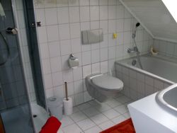 Neben einer Dusche verfügt unser Bad über eine Badewanne, WC und Waschkommode. |