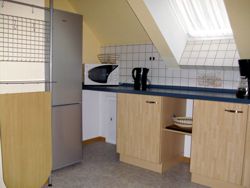 Unsere Küche ist komplett eingerichtet mit: Mikrowellenherd, Spülmaschine, Kaffee- und Brotschneidemaschine, Eierkocher, Toaster, Wasserkocher, Kühlschrank mit Gefrierfach, Herd mit Backofen etc. Zudem werden Küchentücher, Spülmittel, Tabs für die Spülmaschine und Kaffeefilter von uns gestellt. |